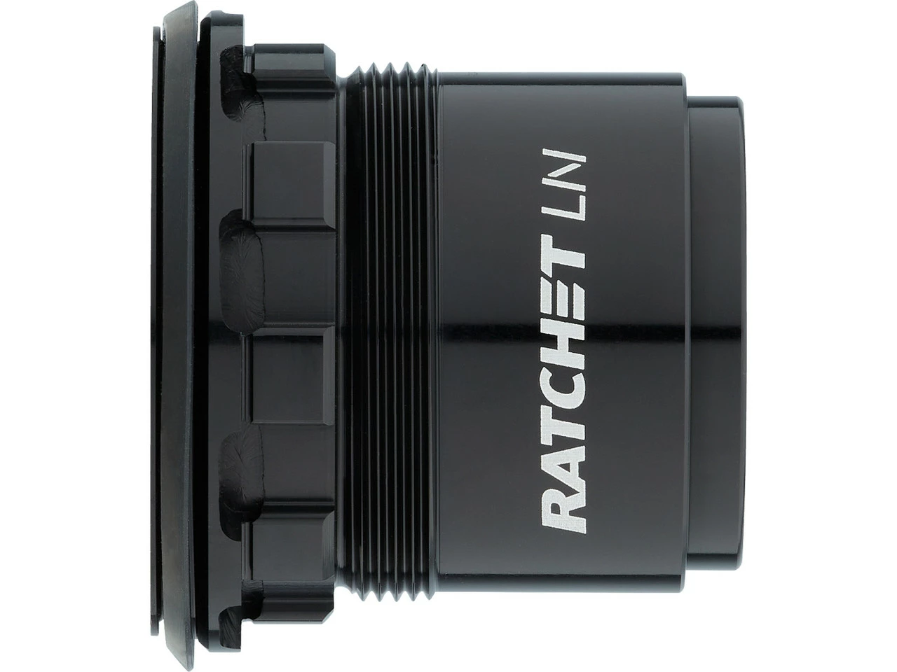 Der Ratchet LN Freilauf dient dazu, DT Swiss 370-Naben mit Sperrklinken auf einen Zahnscheibenfreilauf umzurüsten. Der Vorteil ist die im Vergleich zu Sperrklinken deutlich größere Kontaktfläche mit verbessertem Kraftschluss. Dadurch, dass die Dichtung am Freilaufkörper befestigt ist und nicht wie üblich am Nabengehäuse, kann der Freilaufkörper einfach ausgetauscht werden. Durch den modularen Aufbau besteht die freie Auswahl des Eingriffswinkels (18, 24, 36 oder 54 Zähne) und des Freilaufkörpers.